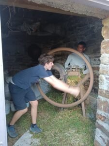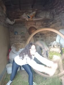 Honnêtement, je pensais que c’était une activité symbolique pour nous “montrer la nature”. On a rempli des paniers entiers de feuilles sèches, puis on les a déposées dans l’étable, en guise de “lit” pour les vaches et les buffles.